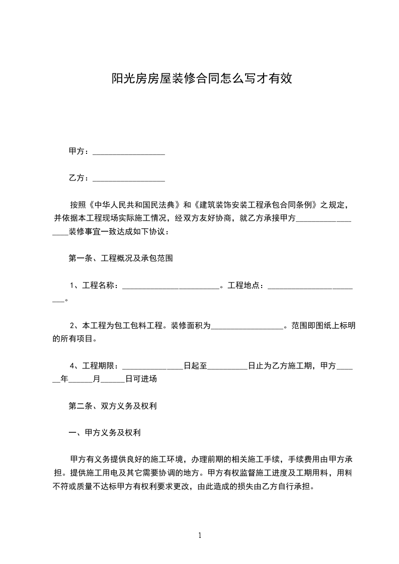 阳光房房屋出租合同怎么写才有效