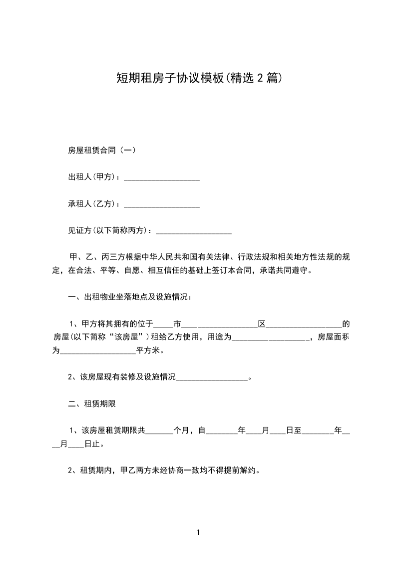 房屋租赁合同(一)