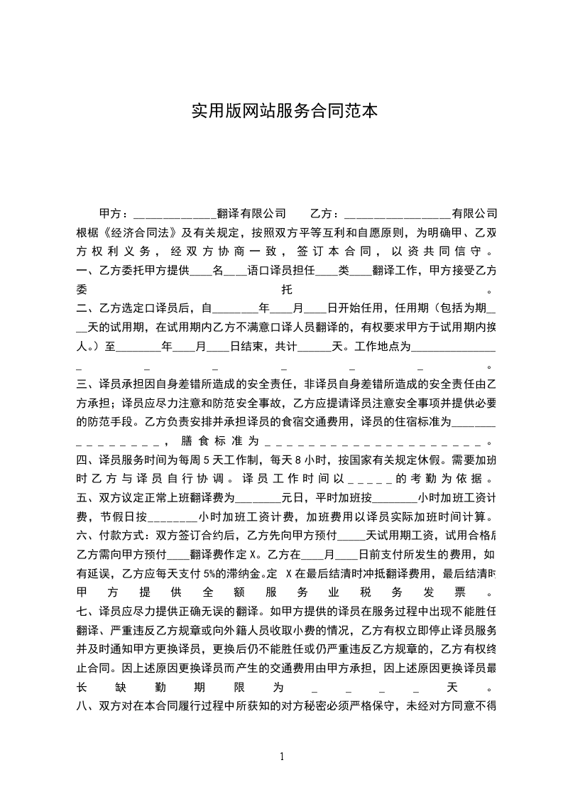 七、译员应尽力提供正确无误的翻译。如甲方提供的译员在服务过程中出现不能胜任翻译、严重违反乙方规章或向外籍人员收取小费的情况,乙方有权立即停止译员服务并及时通知甲方更换译员,更换后仍不能胜任或仍严重违反乙方规章的,乙方有权终止合同。因上述原因更换译员而产生的交通费用由甲方承担,因上述原因更换译员最长缺勤期限为____天。