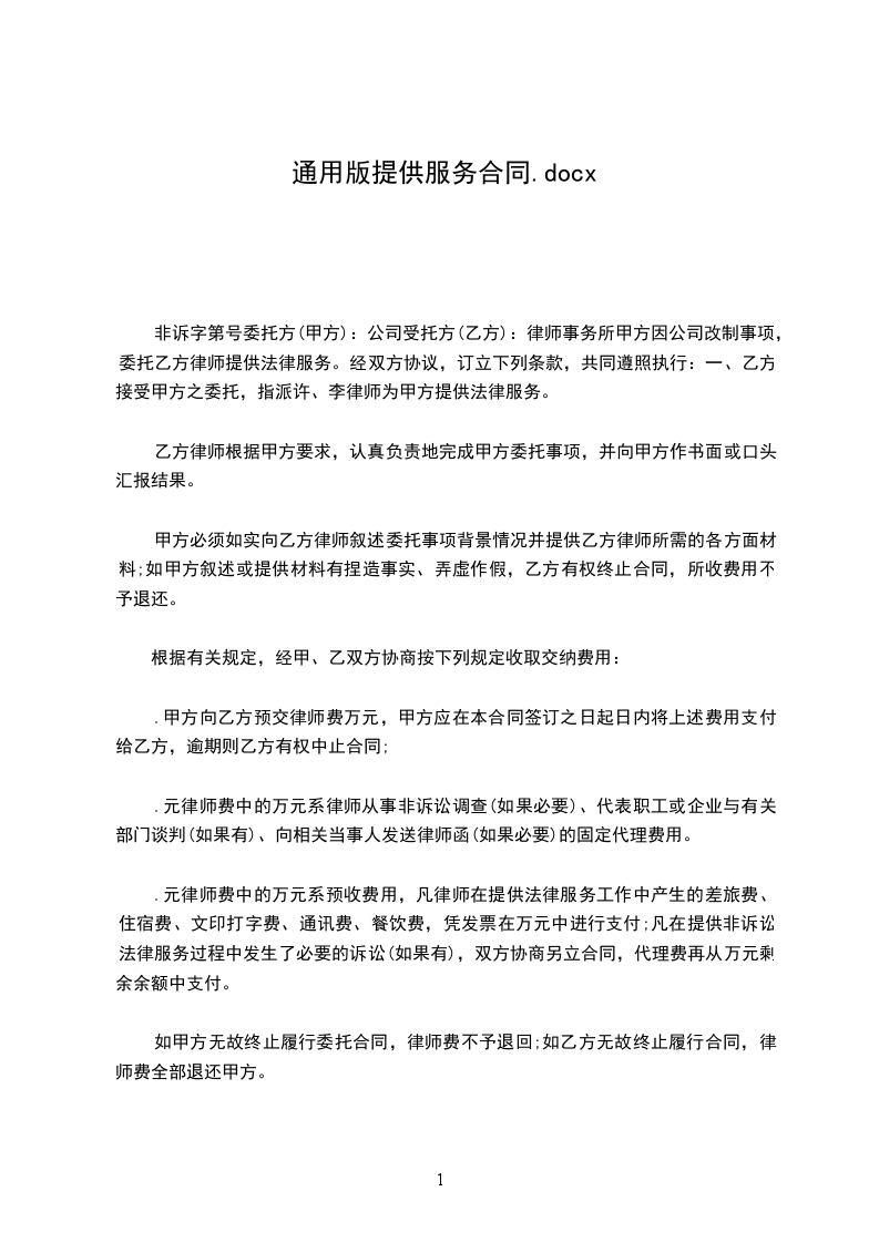 第四条 乙方提供下列服务(内容及收费详如附件):