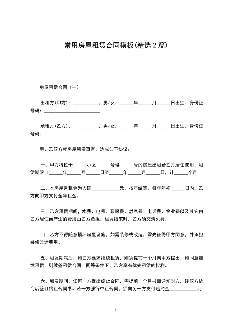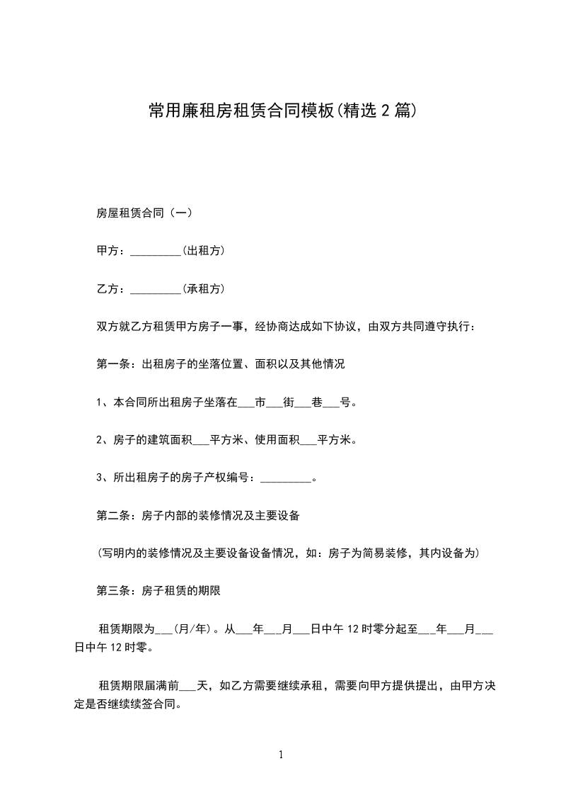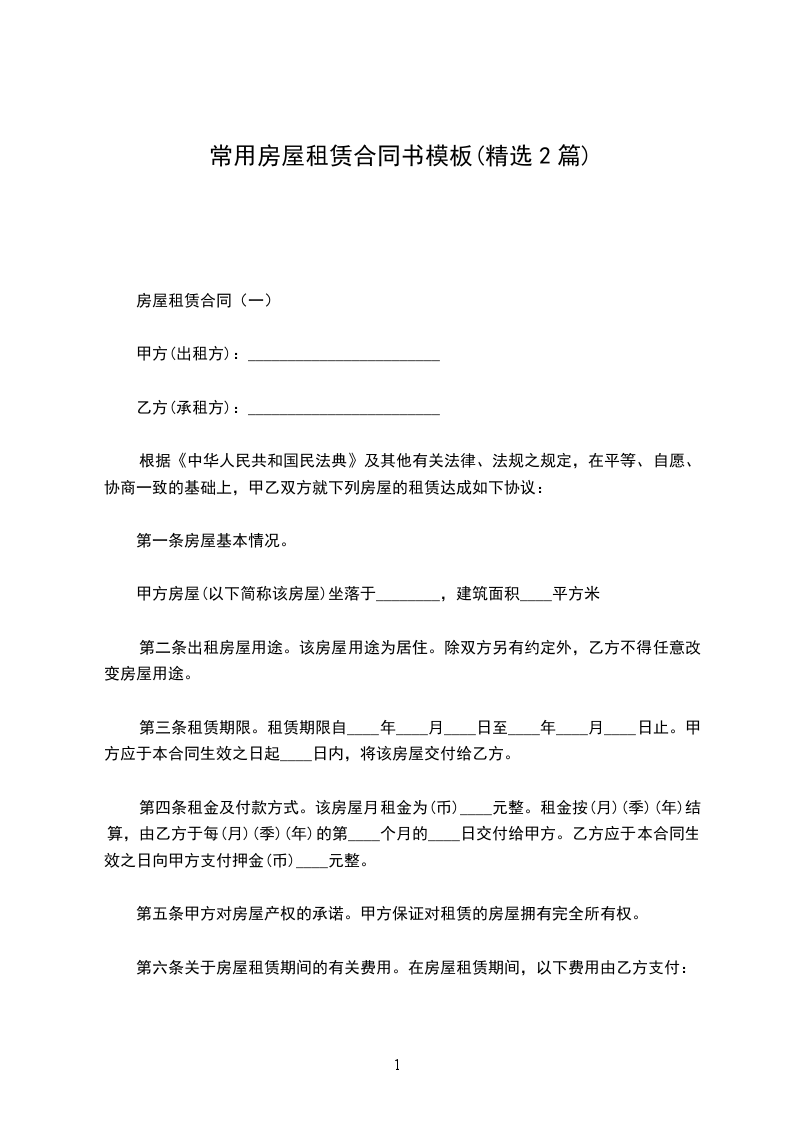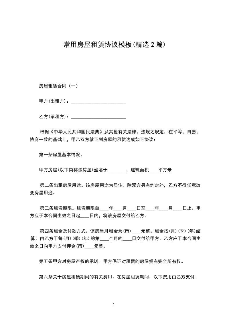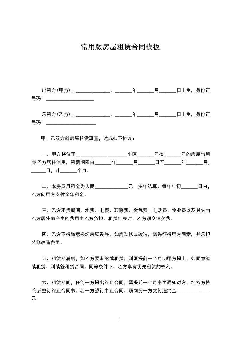 一、甲方将位于______小区______号楼______号的房屋出租给乙方居住使用,租赁期限自______年______月______日至______年______月______日,计______个月。