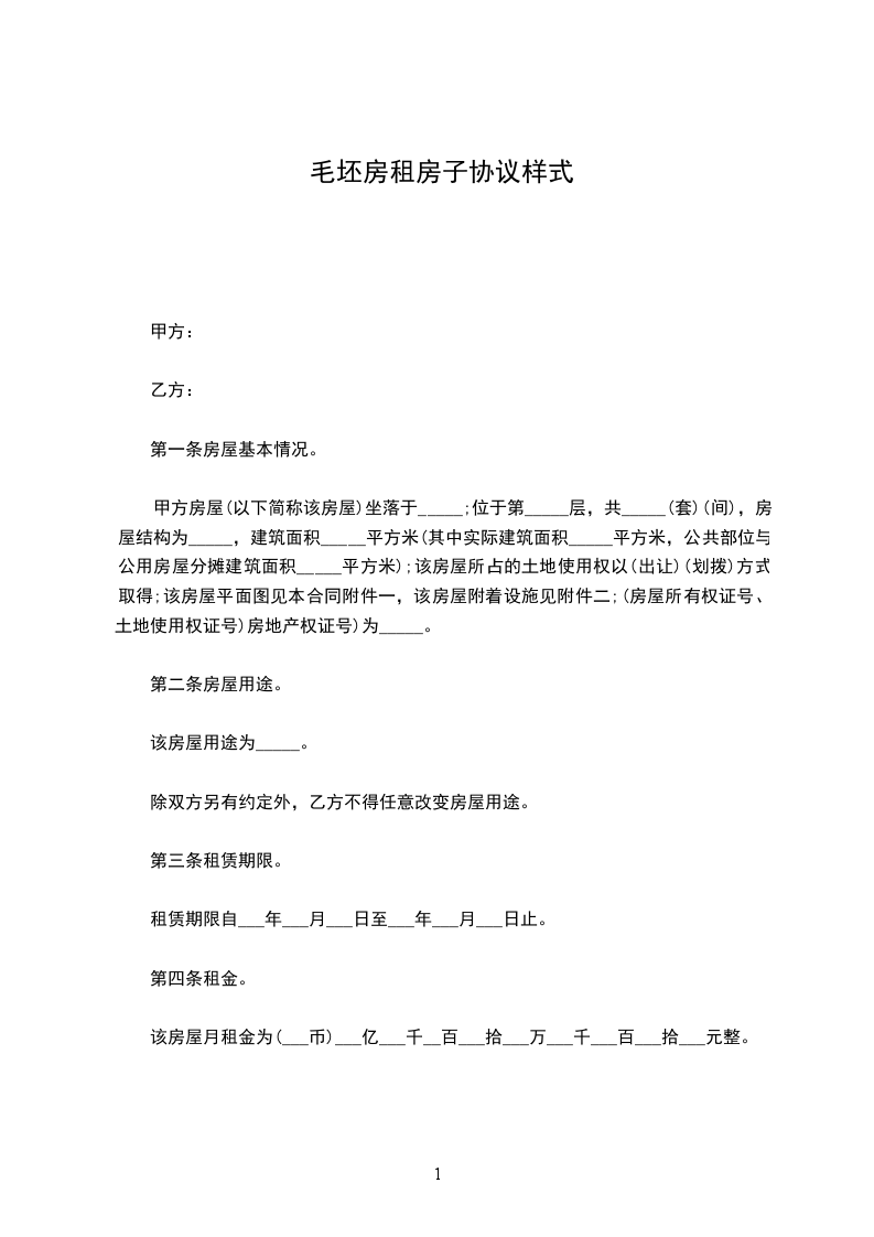 该房屋月租金为(___币)___亿___千__百___拾___万___千___百___拾___元整。