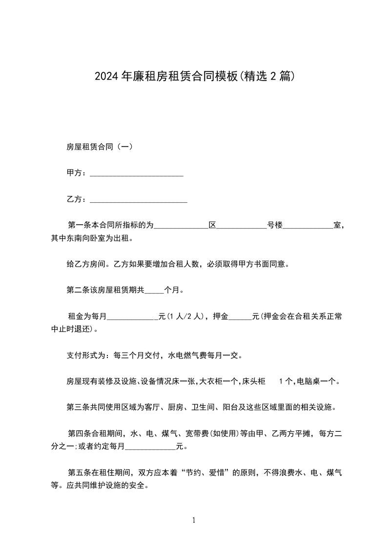 房屋租赁合同(一)