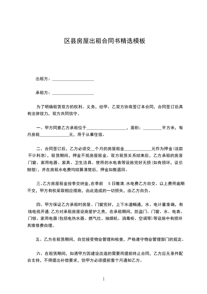 一、甲方同意乙方承租位于___________________,面积:_________平方米,每月房租______________元,用于从事住宿。