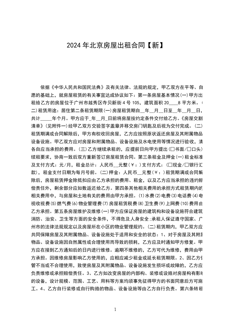 一、甲方将位于__________________租赁给乙方。甲方对所出租的房屋具有合法产权。