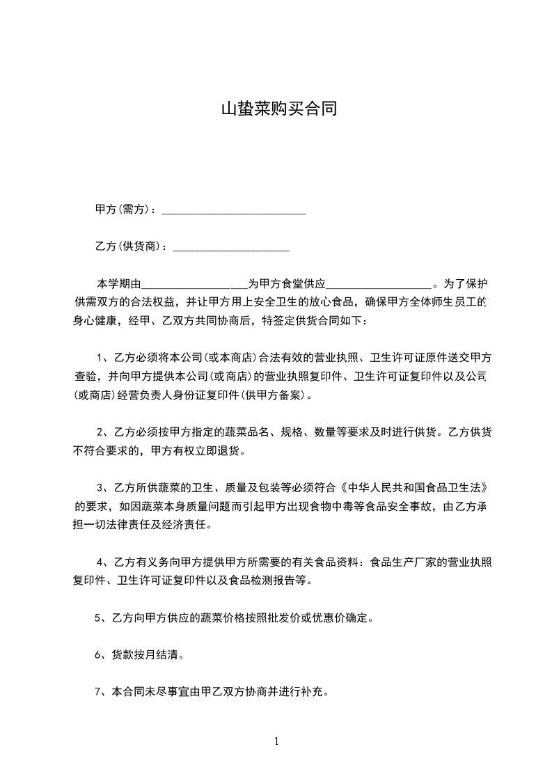 5、乙方向甲方供应的蔬菜价格按照批发价或优惠价确定。