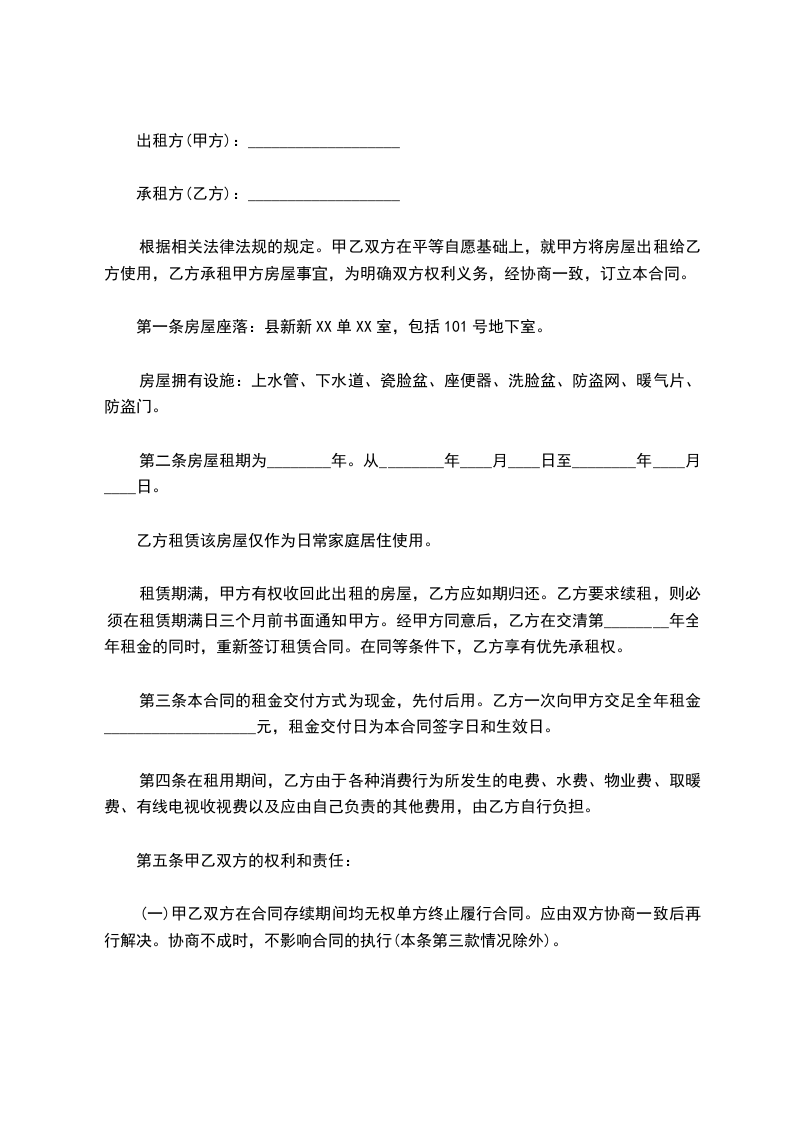 第一条房屋座落:县新新XX单XX室,包括101号地下室。