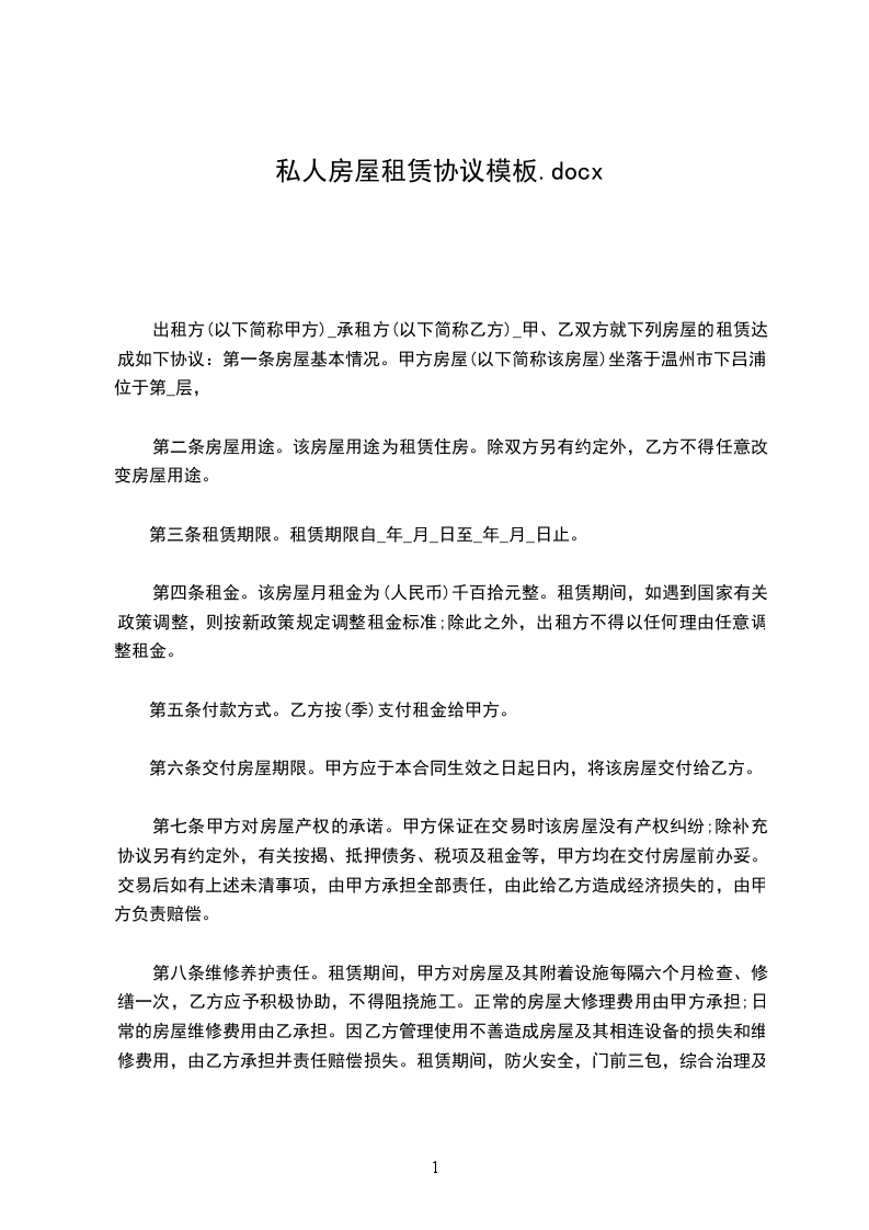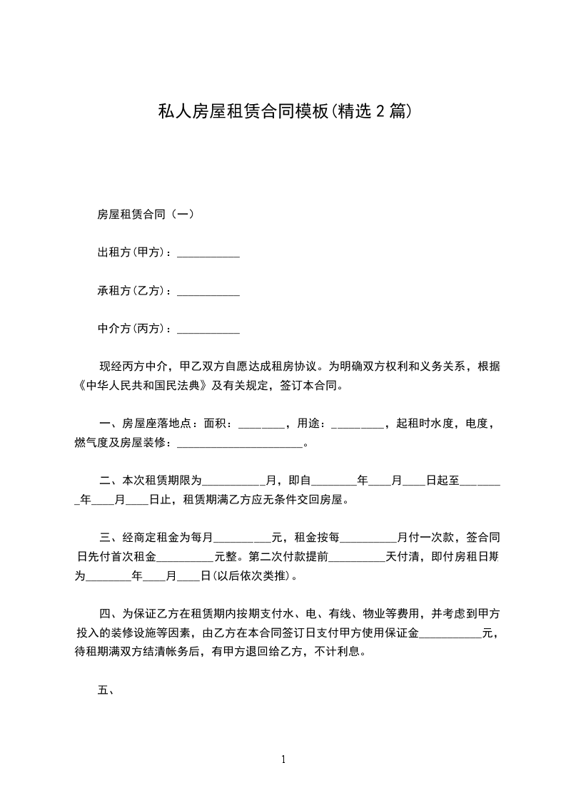 房屋租赁合同(一)