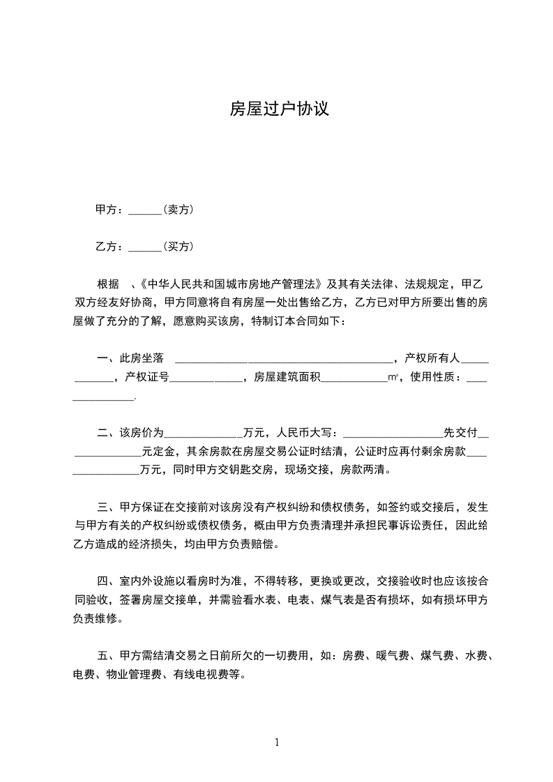 第四条:甲、乙双方同意 __________日 前由甲方将上述房地产正式交付给乙方,该房屋的土地使用权一并转移给乙方 。