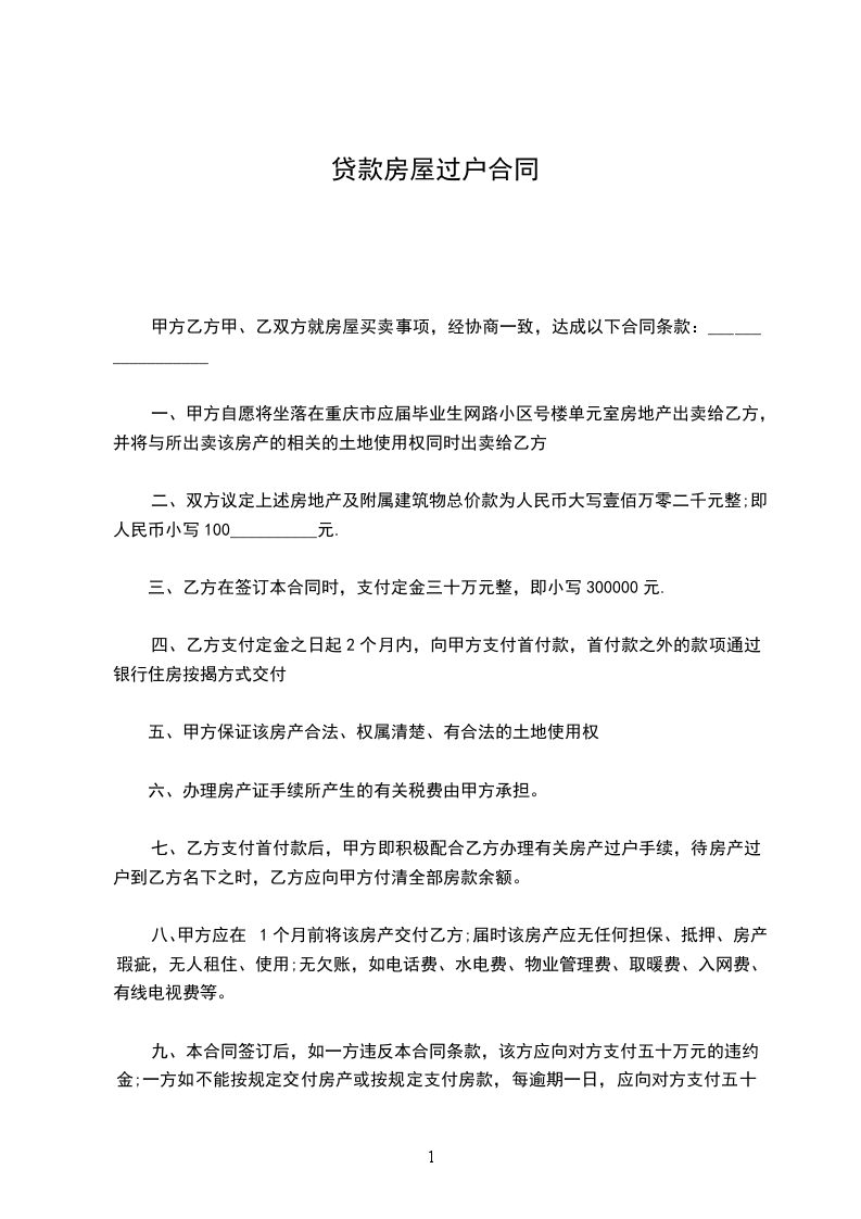 以上则是有贷款的房屋过户协议书