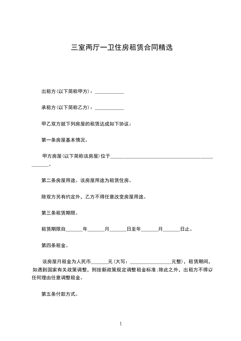 该房屋月租金为人民币_______元(大写:_________________元整),租赁期间,如遇到国家有关政策调整,则按新政策规定调整租金标准;除此之外,出租方不得以任何理由任意调整租金。