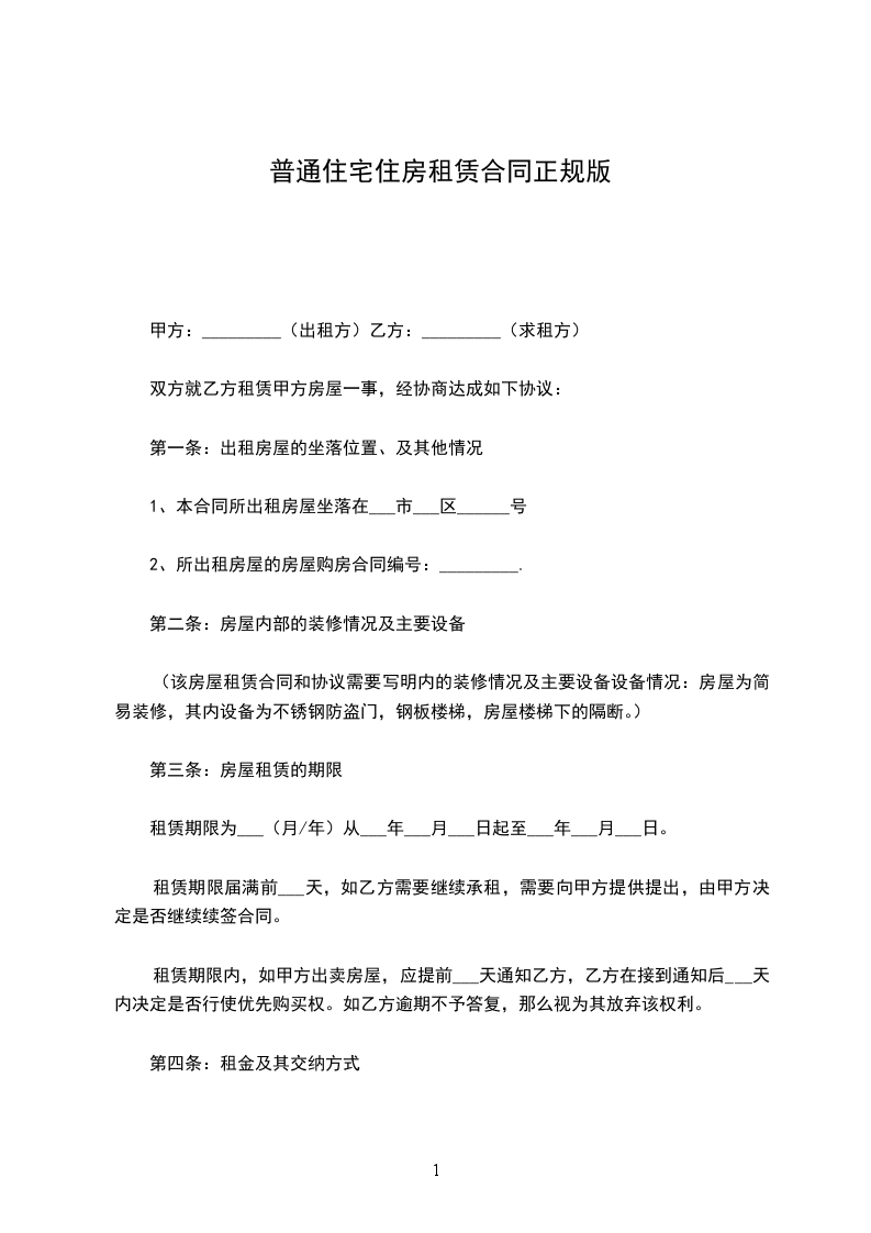 3、乙方向甲方承诺,租赁该房屋仅作为普通住房使用。