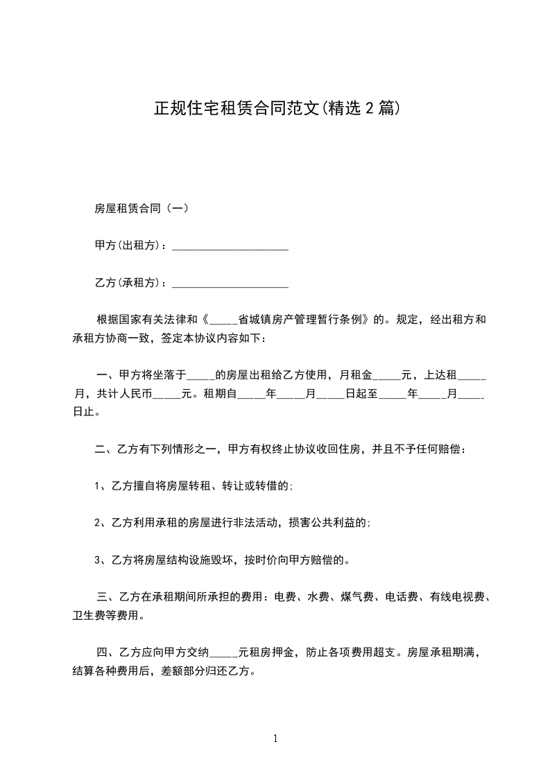 房屋租赁合同(一)