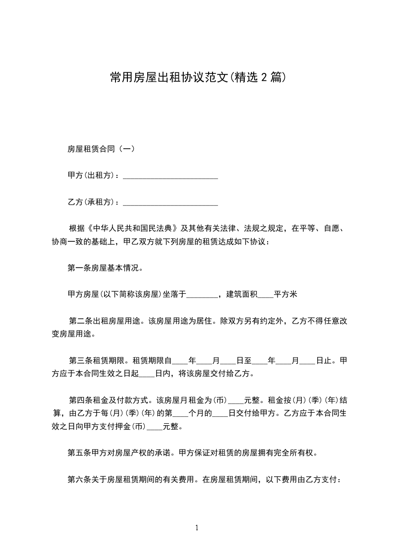 第二条出租房屋用途。该房屋用途为居住。除双方另有约定外,乙方不得任意改变房屋用途。