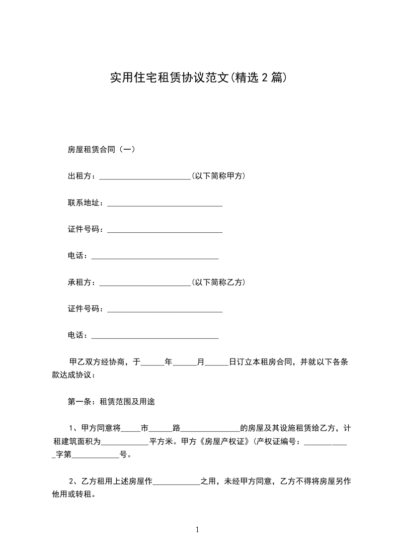 房屋租赁合同(一)