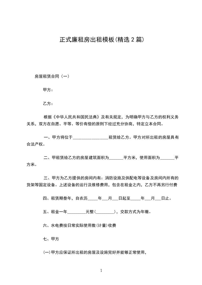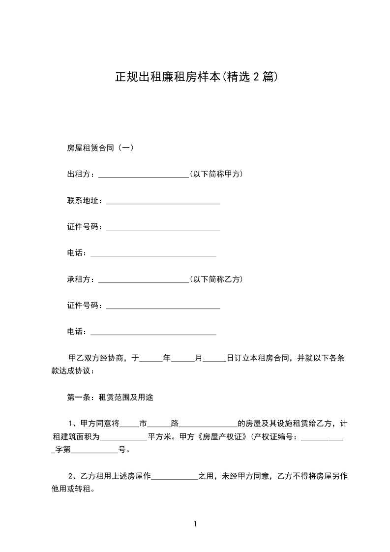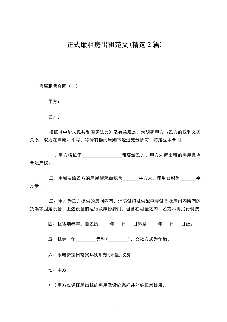 房屋租赁合同(一)