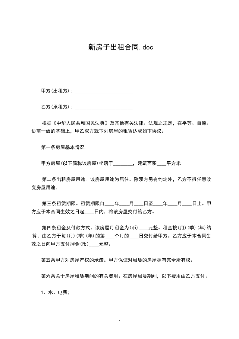 根据《中华人民共和国民法典》及有关规定,为明确出租方与承租方的权利义务关系,经双方协商一致,签订本合同条款如下: