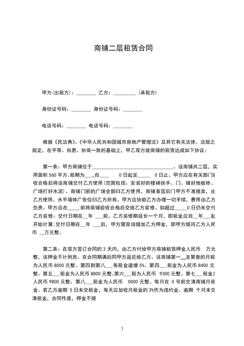 2.租赁期满乙方如无违约行为的,则享有同等条件下对商铺的优先租赁权。