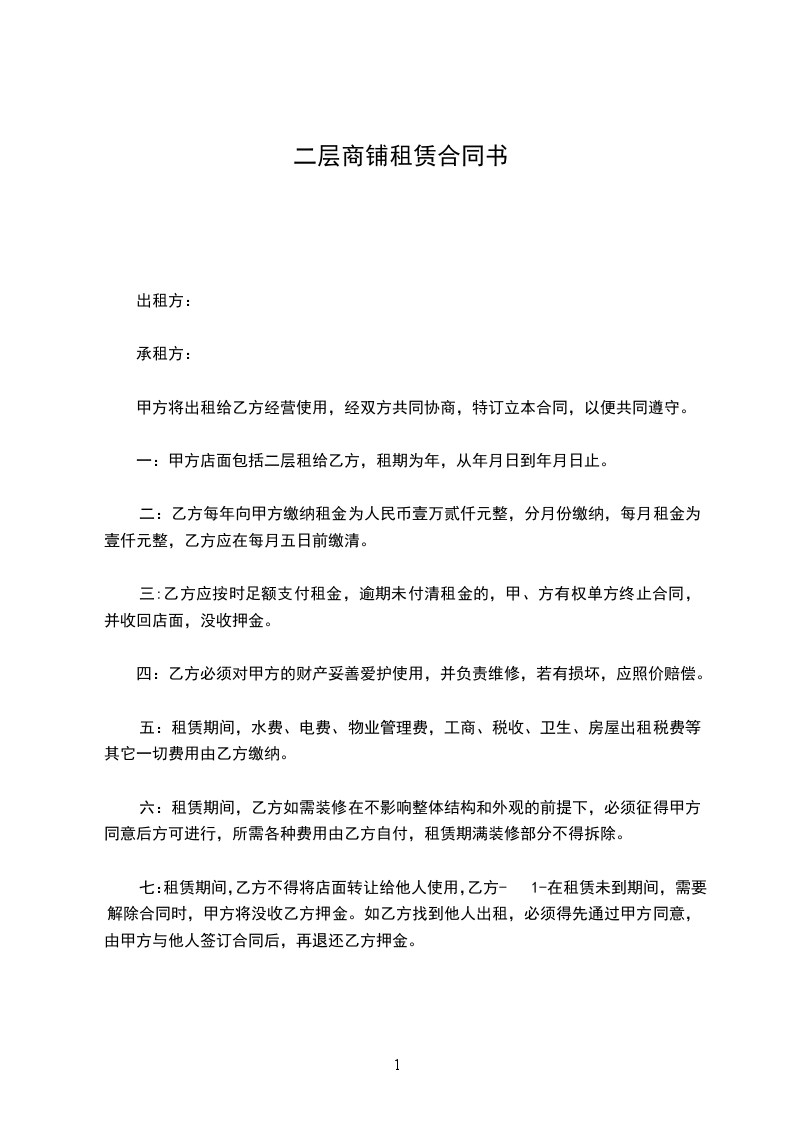 1.租金:共_________元。租赁期间,甲方不得以任何理由任意调整租金。