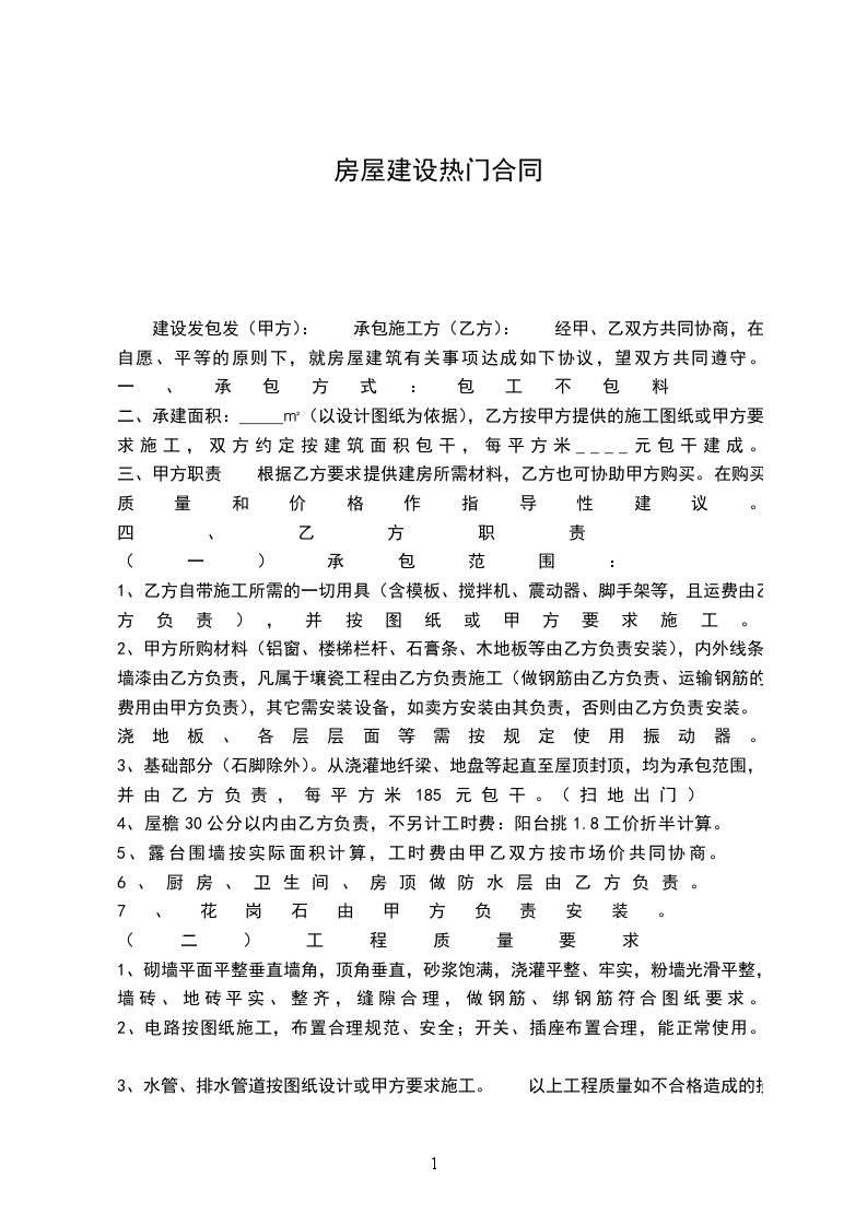 建设发包发(甲方): 承包施工方(乙方): 经甲、乙双方共同协商,在自愿、平等的原则下,就房屋建筑有关事项达成如下协议,望双方共同遵守。