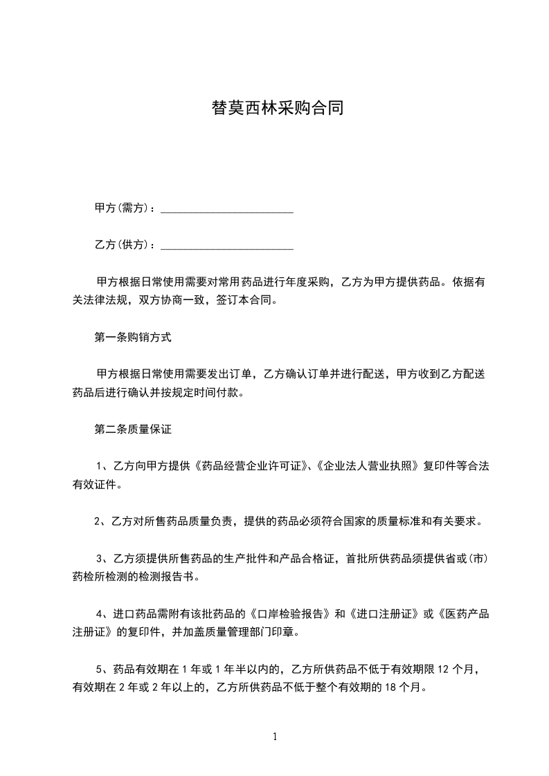 3、乙方须提供所售药品的生产批件和产品合格证,首批所供药品须提供省或(市)药检所检测的检测报告书。
