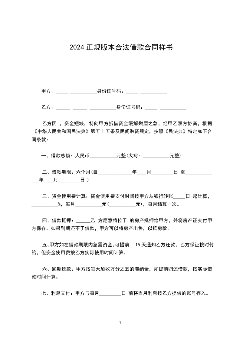 一、乙方向甲方借款金额(人民币)____________________元(大写:_______________________元整)。
