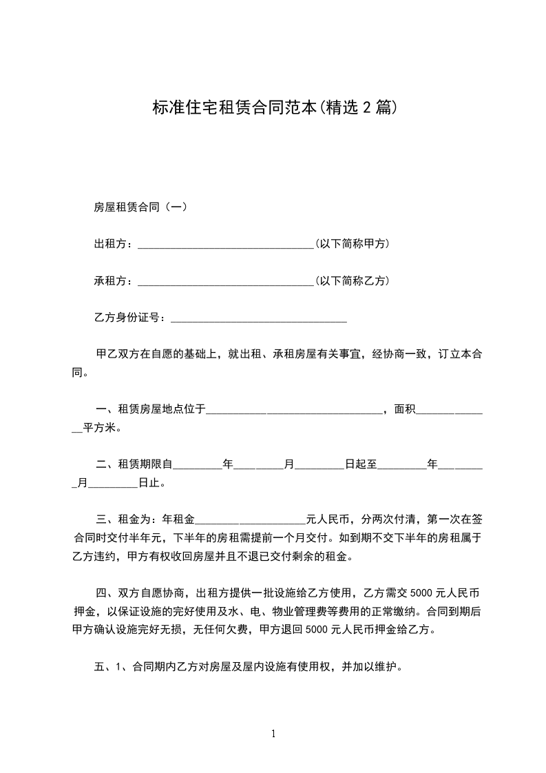 房屋租赁合同(一)
