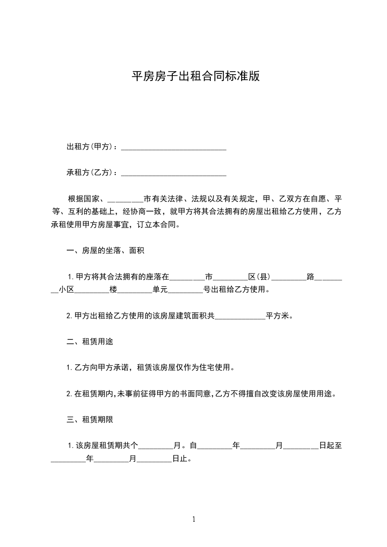 甲方将自有的坐落在_________市______街道______小区______栋______号的房屋出租给乙方使用。