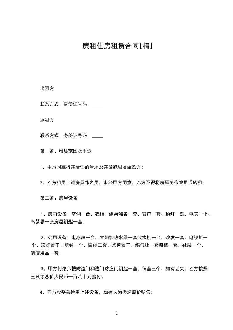 4.1甲、乙双方约定,乙方承租的一个卧室的月租金为人民币_________元。(大写:_____________________元整。)