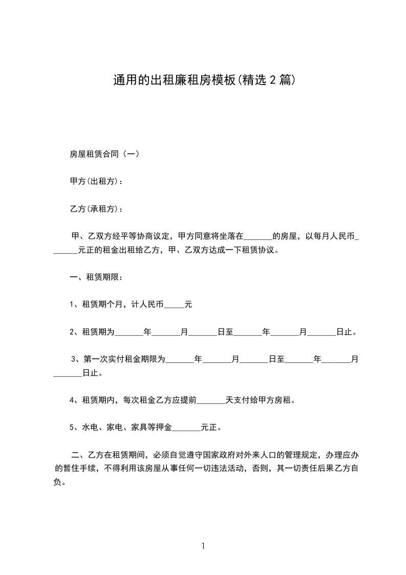 房屋租赁合同(一)
