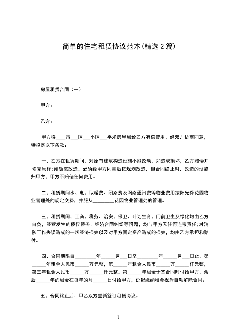 房屋租赁合同(一)