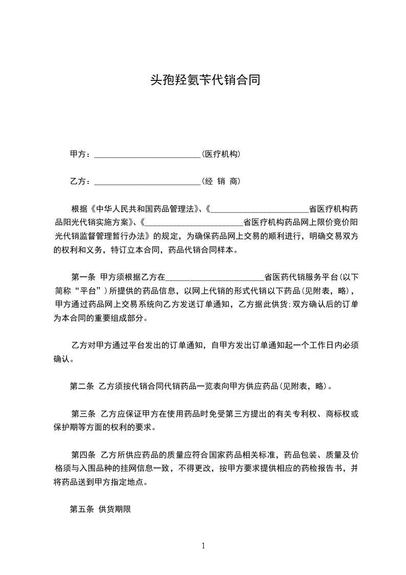 2、乙方负责向甲方供应国家基本药品目录内的药品:______________