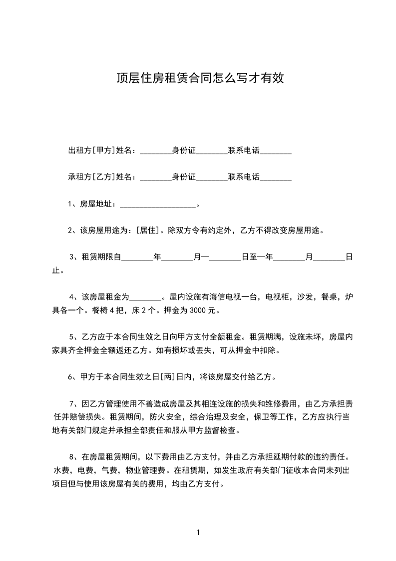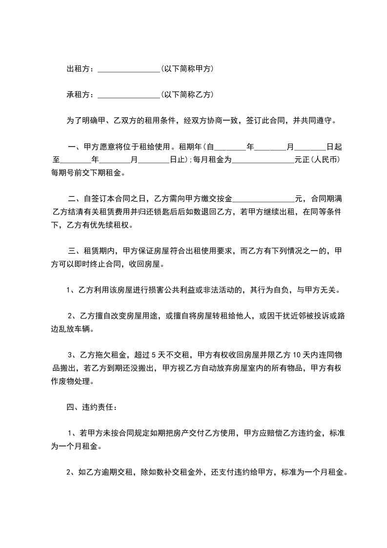 1、本合同所出租房子坐落在___市___街___巷___号。