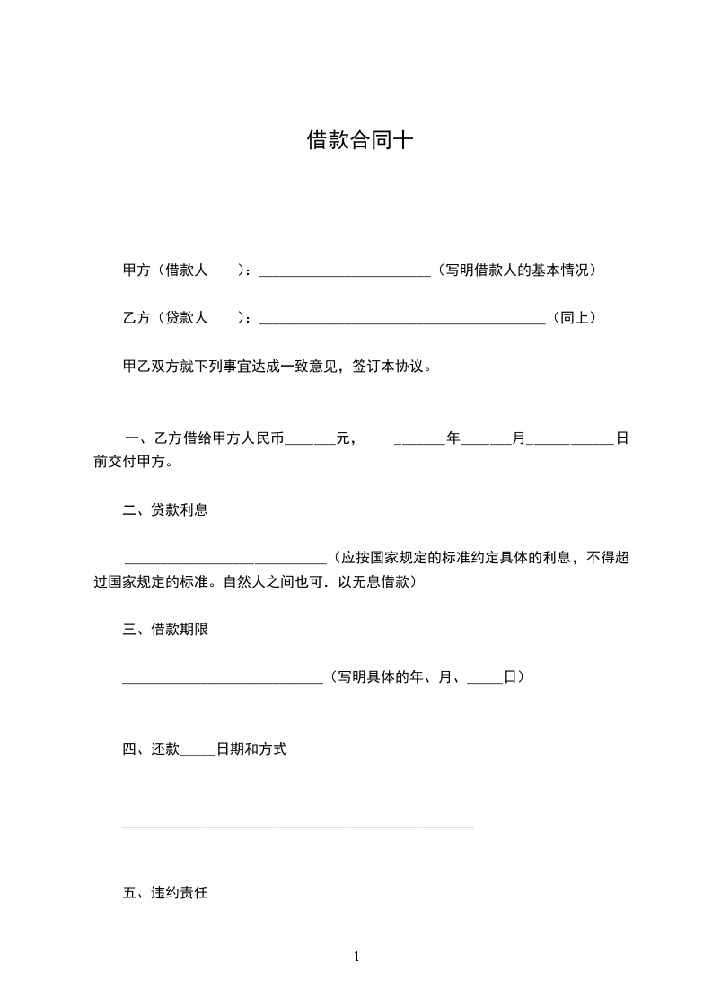 一、乙方借给甲方人民币_______元, _______年_______月____________日前交付甲方。