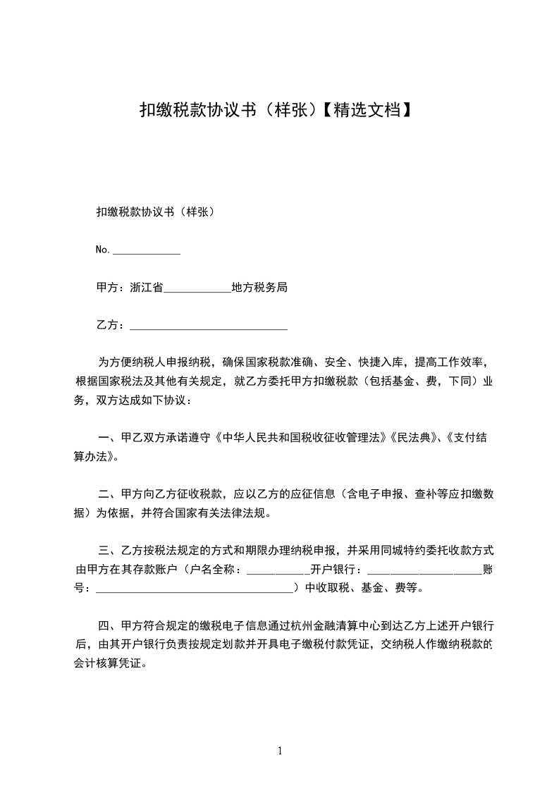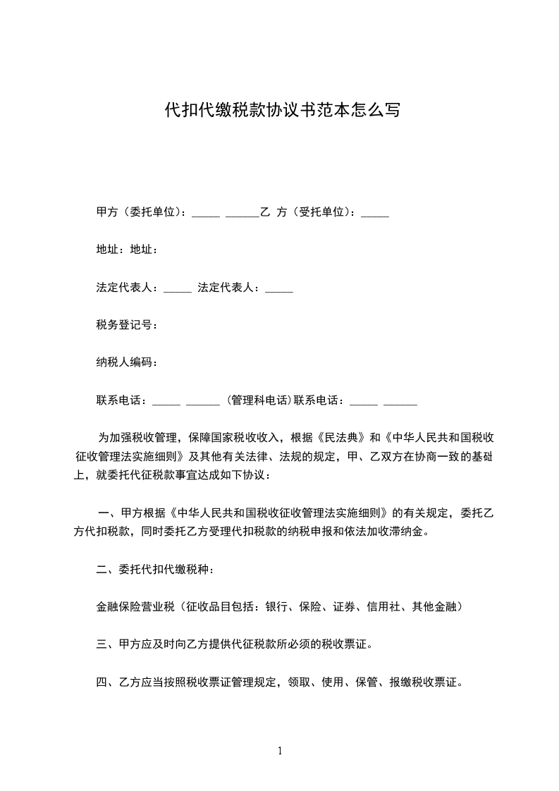 为加强税收管理,保障国家税收收入,根据《民法典》和《中华人民共和国税收征收管理法实施细则》及其他有关法律、法规的规定,甲、乙双方在协商一致的基础上,就委托代征税款事宜达成如下协议: