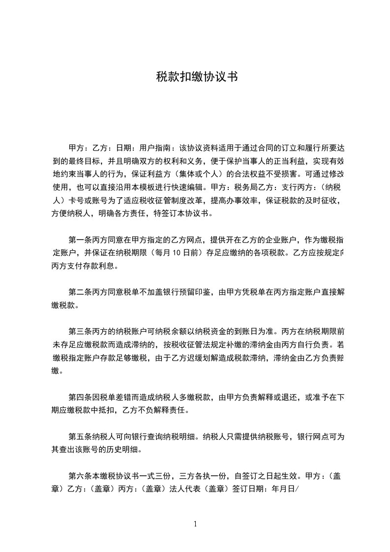 一、甲方根据《中华人民共和国税收征收管理法实施细则》的有关规定,委托乙方代扣税款,同时委托乙方受理代扣税款的纳税申报和依法加收滞纳金。