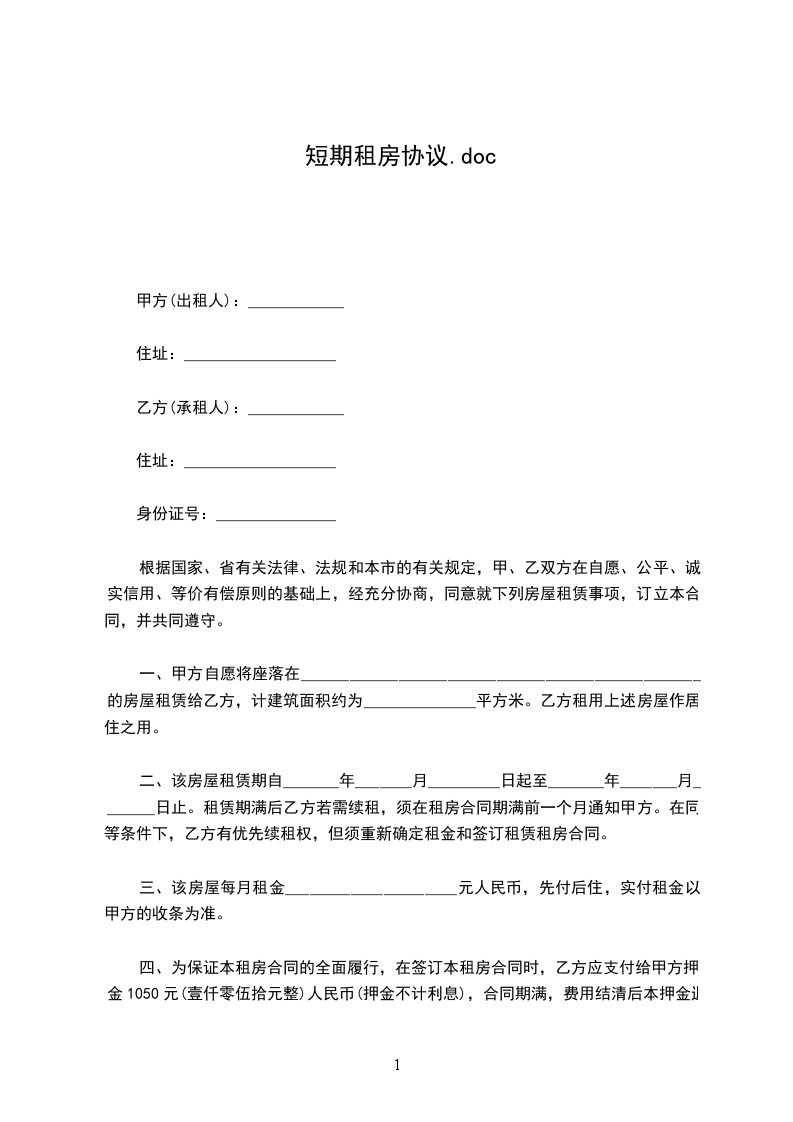 四、租赁期间,如甲乙方任何一方因特殊情况需要终止本合同,必须提前30天书面通知对方解除合同,违约方支付给守约方违约金,违约金的数额为押金数,并办理好退租金和退房屋的交接手续。房屋如因不可抗力的自然灾害导致毁损,本合同则自然终止,互不承担责任。