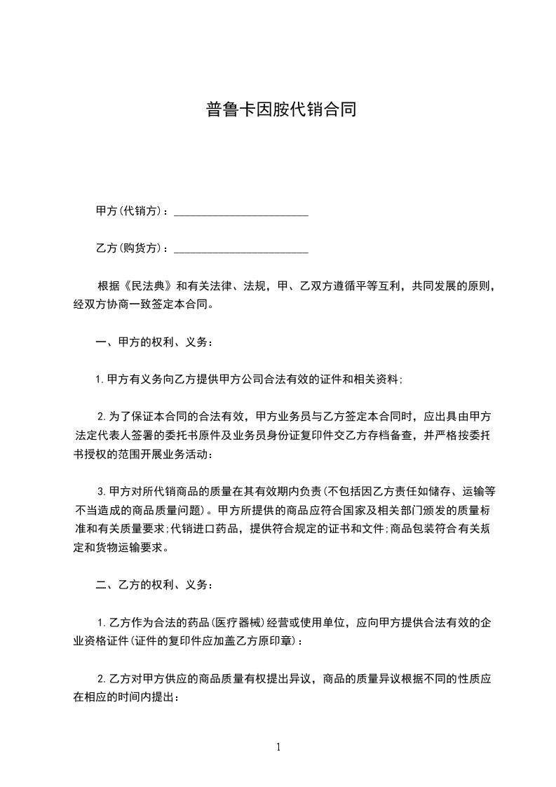 普莫卡因购销合同