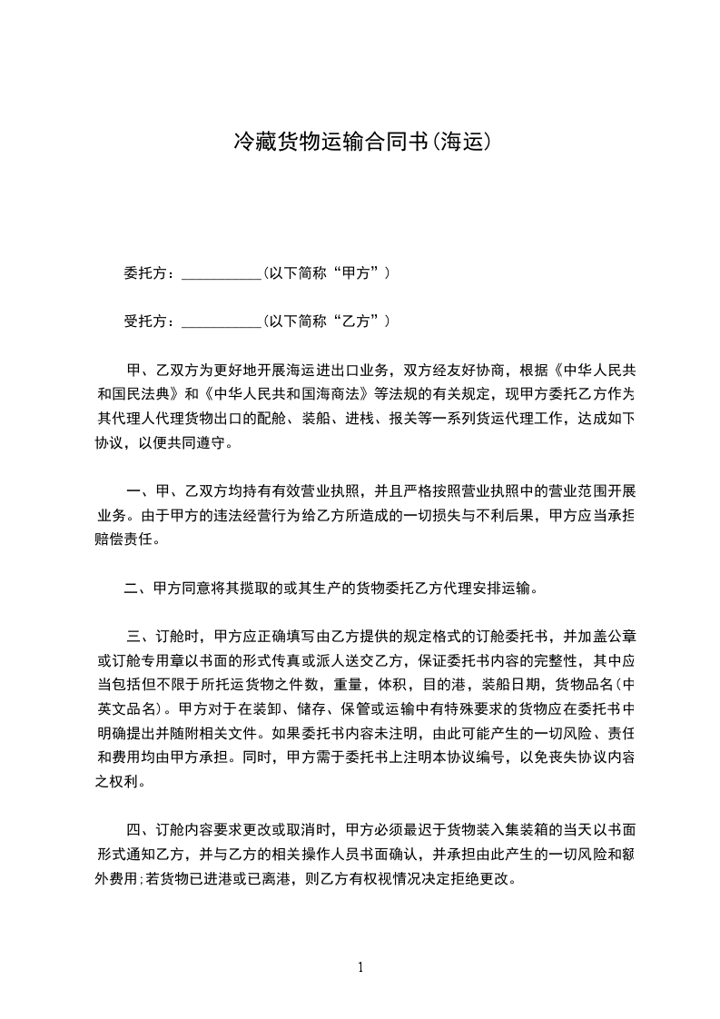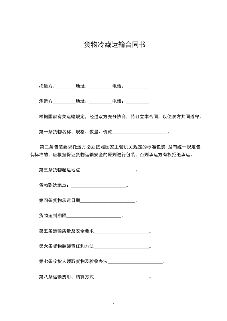 一 货物名称、规格运输合同范本货物名称:速冻食品。(速冻肉制品及速冻其他食品)