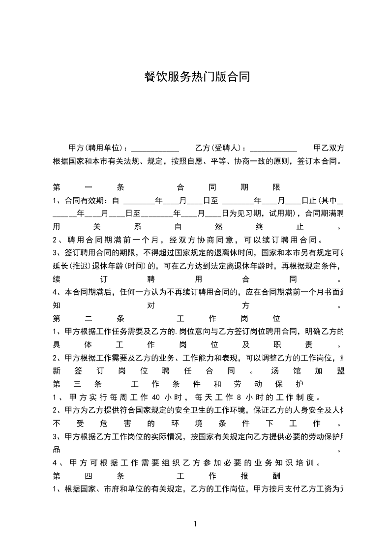 第一条 合同期限
