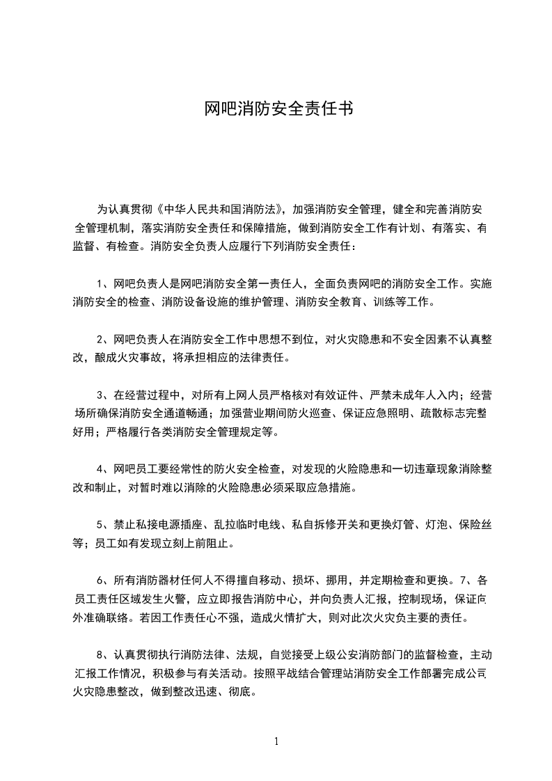 10、消防安全负责人应自觉学习和掌握消防安全知识和基本的消防灭火技能,提高防火意识,树立安全第一的思想,把网吧的消防安全工作当作头等大事来抓。充分做好火灾隐患的检查、整改和防范,确保网吧消防安全。