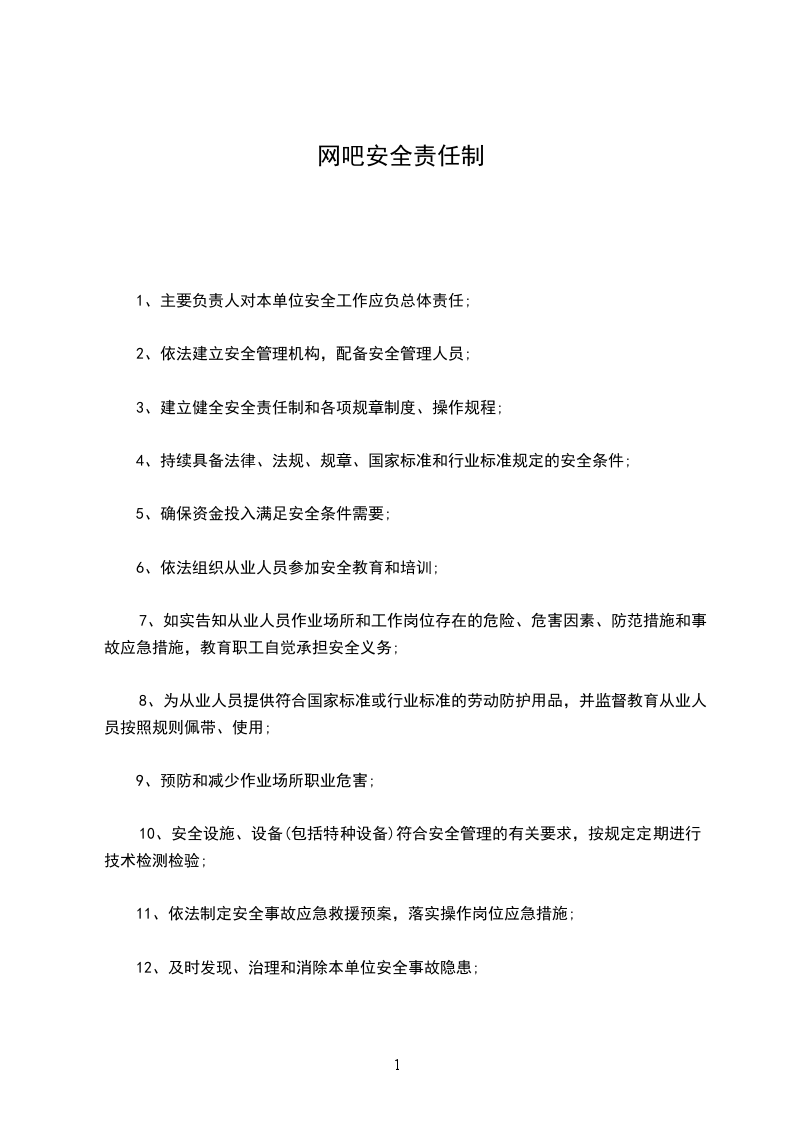 1、网吧负责人是网吧消防安全第一责任人,全面负责网吧的消防安全工作。实施消防安全的检查、消防设备设施的维护管理、消防安全教育、训练等工作。