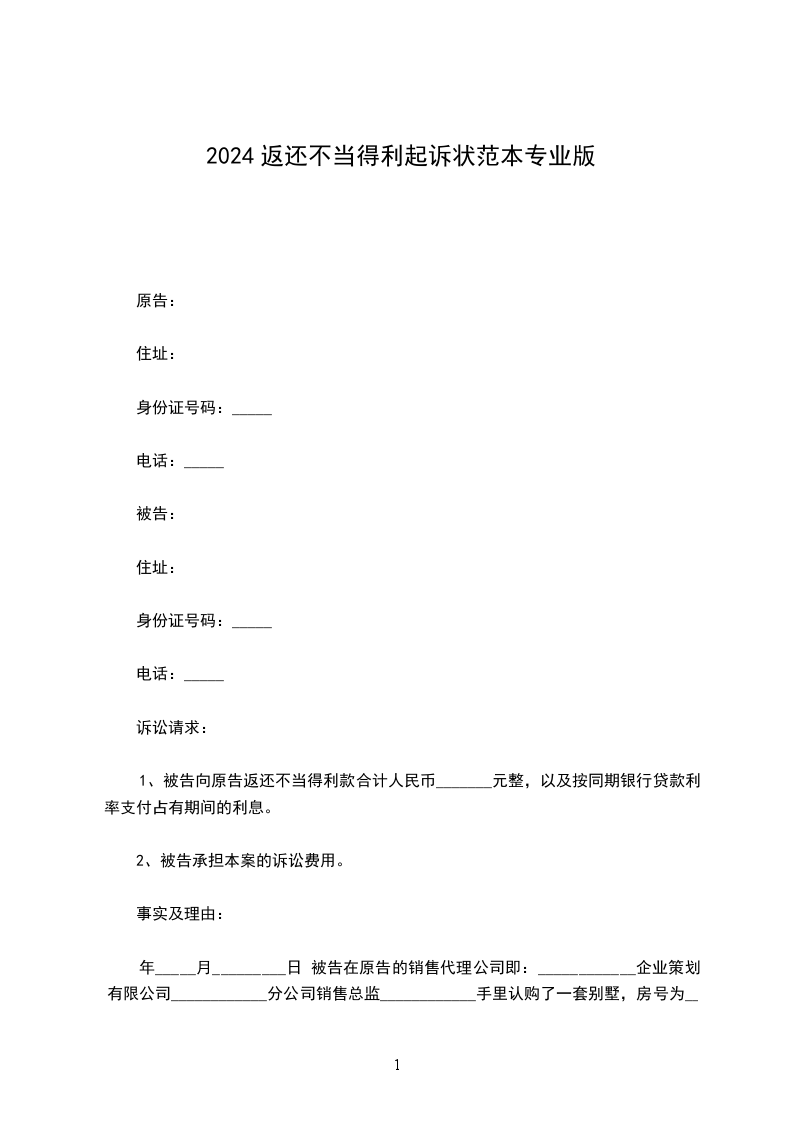 1、被告向原告返还不当得利款合计人民币_______元整,以及按同期银行贷款利率支付占有期间的利息。