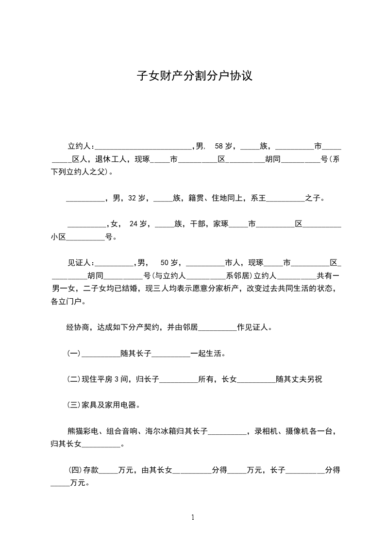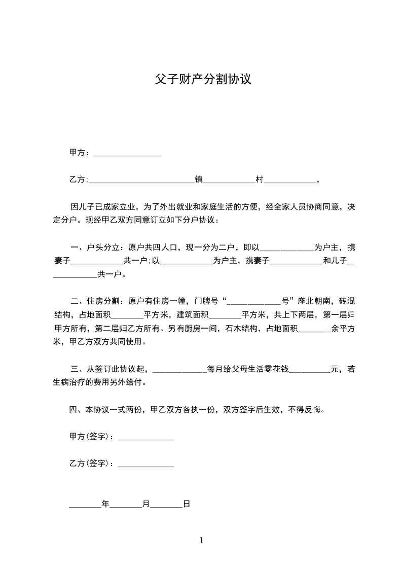 甲方:_____ ________________,男,______________年________月_____________日 生,汉族,住________________________。