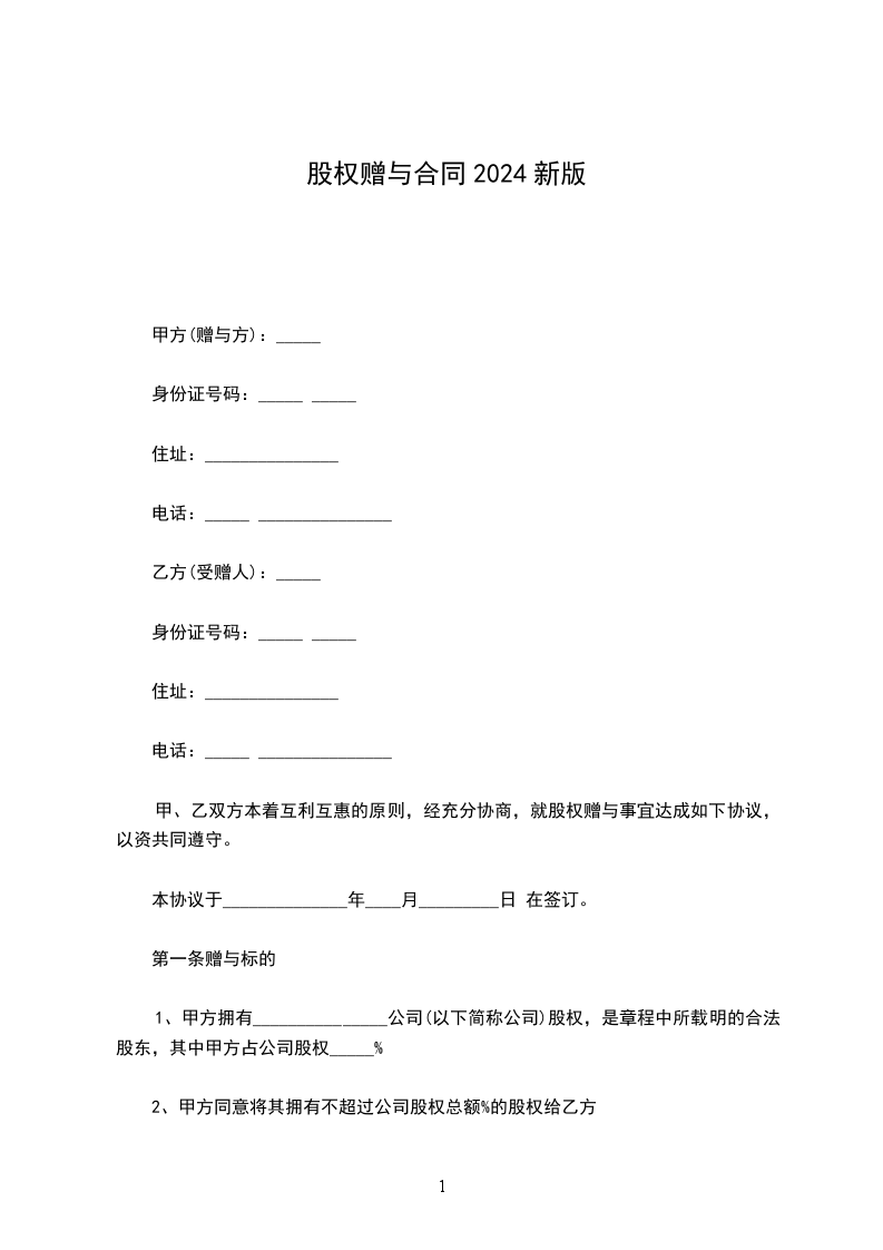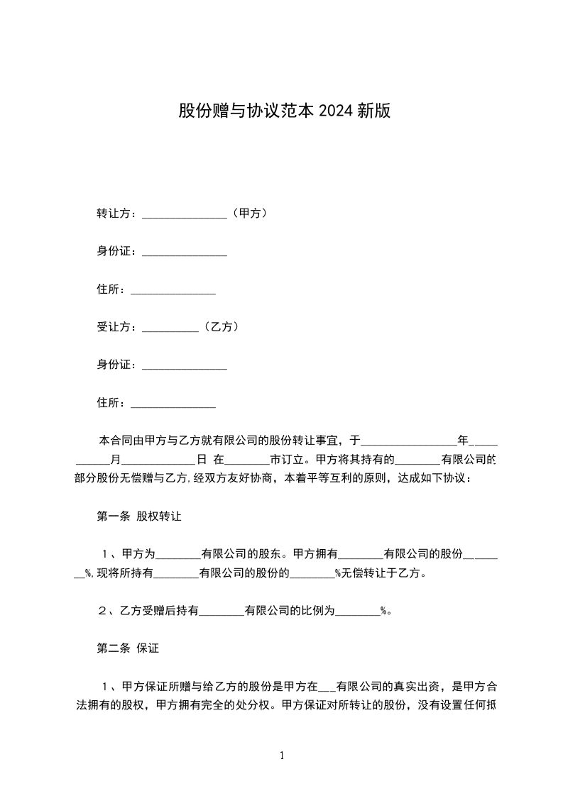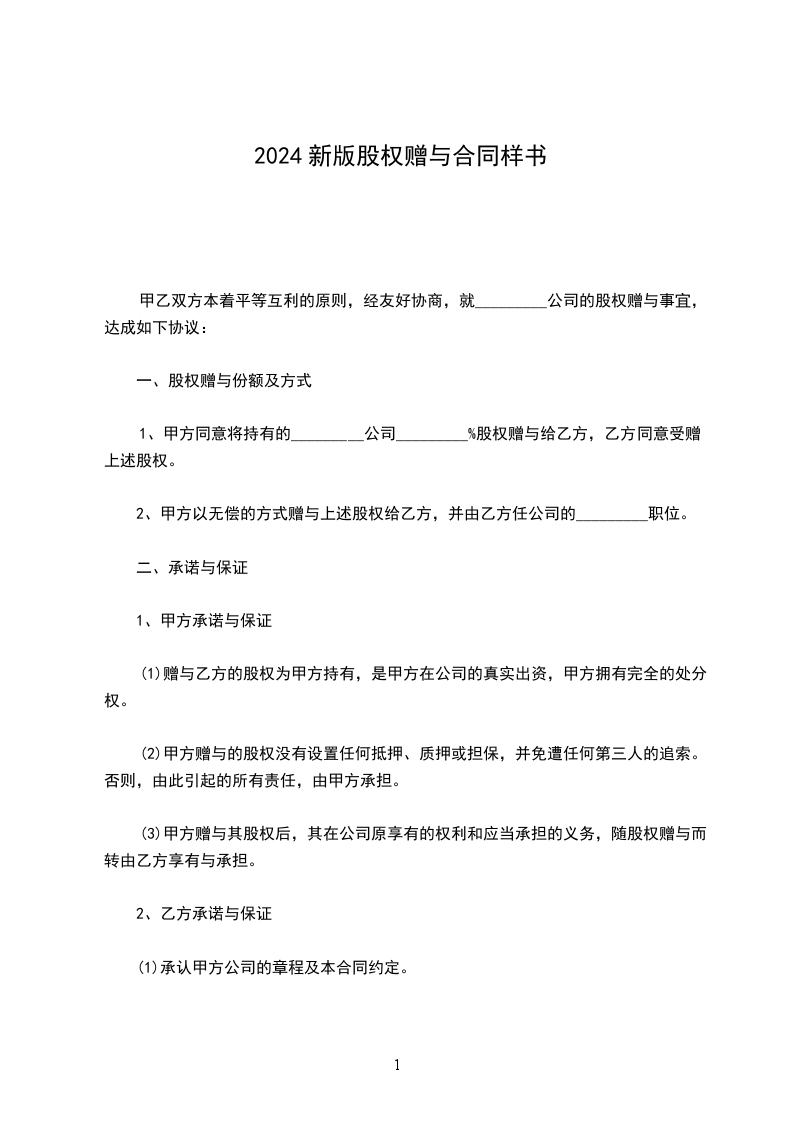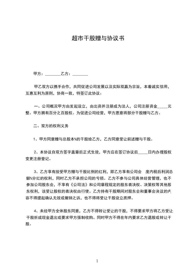 1、甲方赠与乙方干服比例为公司总股本的百分之____,有效为___________年,本协议自双方签字盖章后正式生效,在有效期内不得转让和继承