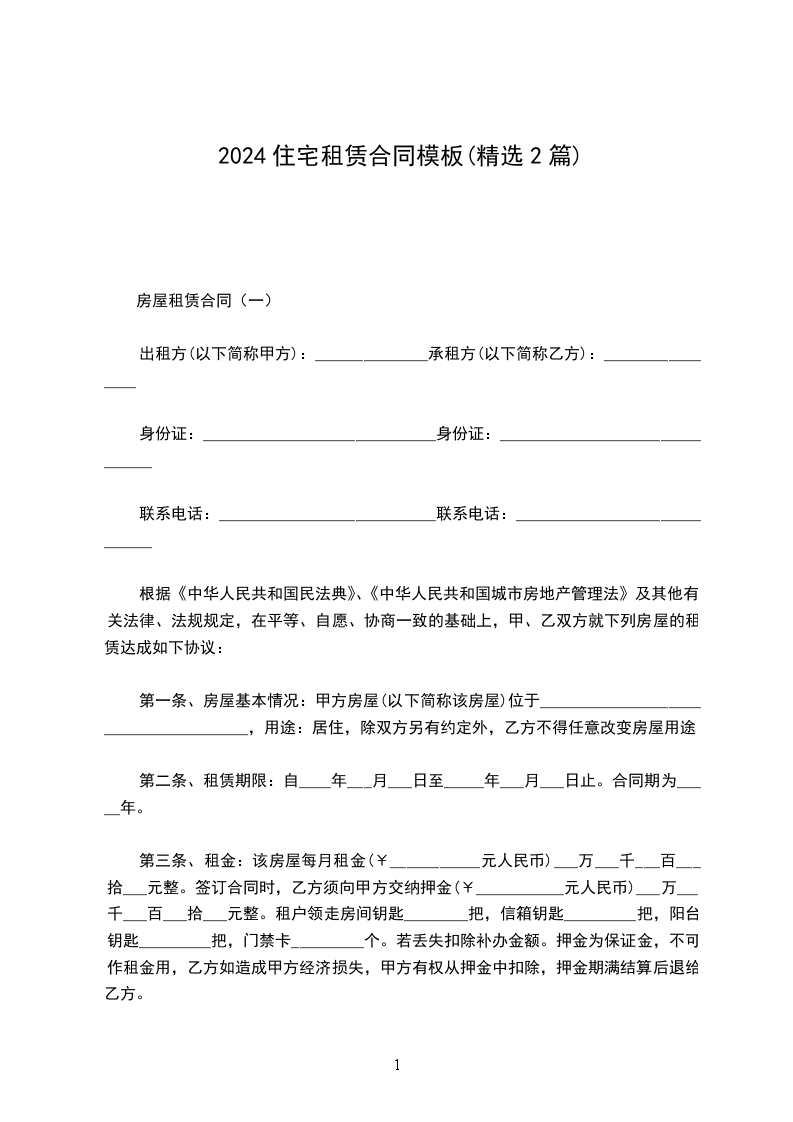 房屋租赁合同(一)