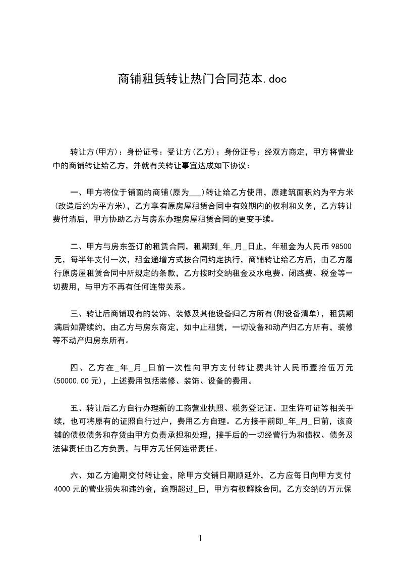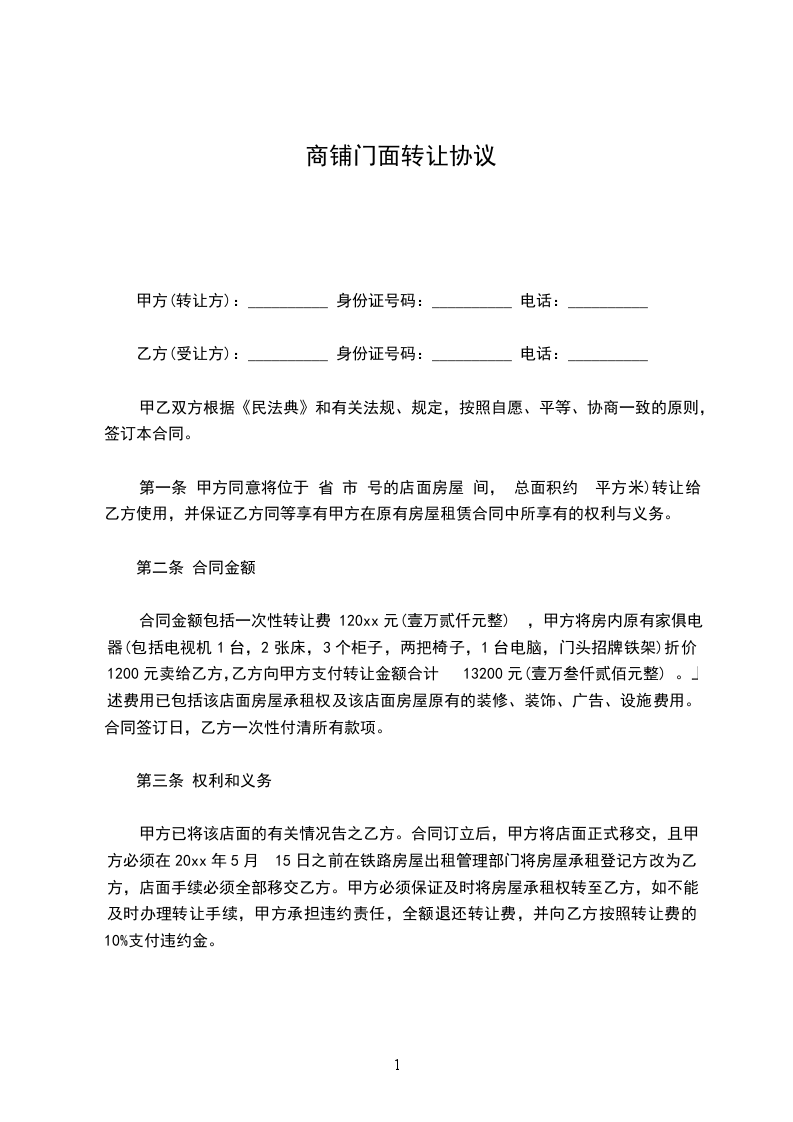 经双方商定,甲方将营业中的商铺转让给乙方,并就有关转让事宜达成如下协议: