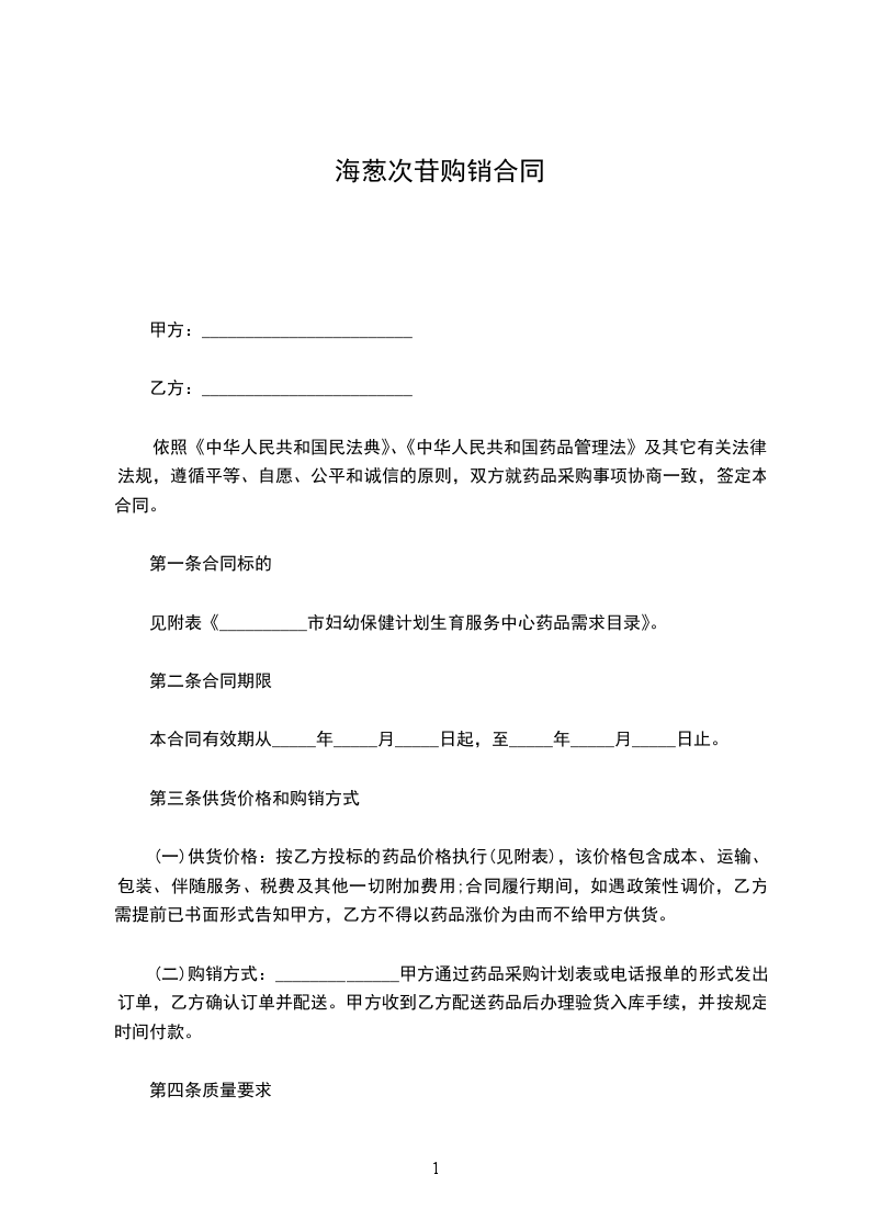 依照《中华人民共和国民法典》、《中华人民共和国药品管理法》及其它有关法律法规,遵循平等、自愿、公平和诚信的原则,双方就药品采购事项协商一致,签定本合同。