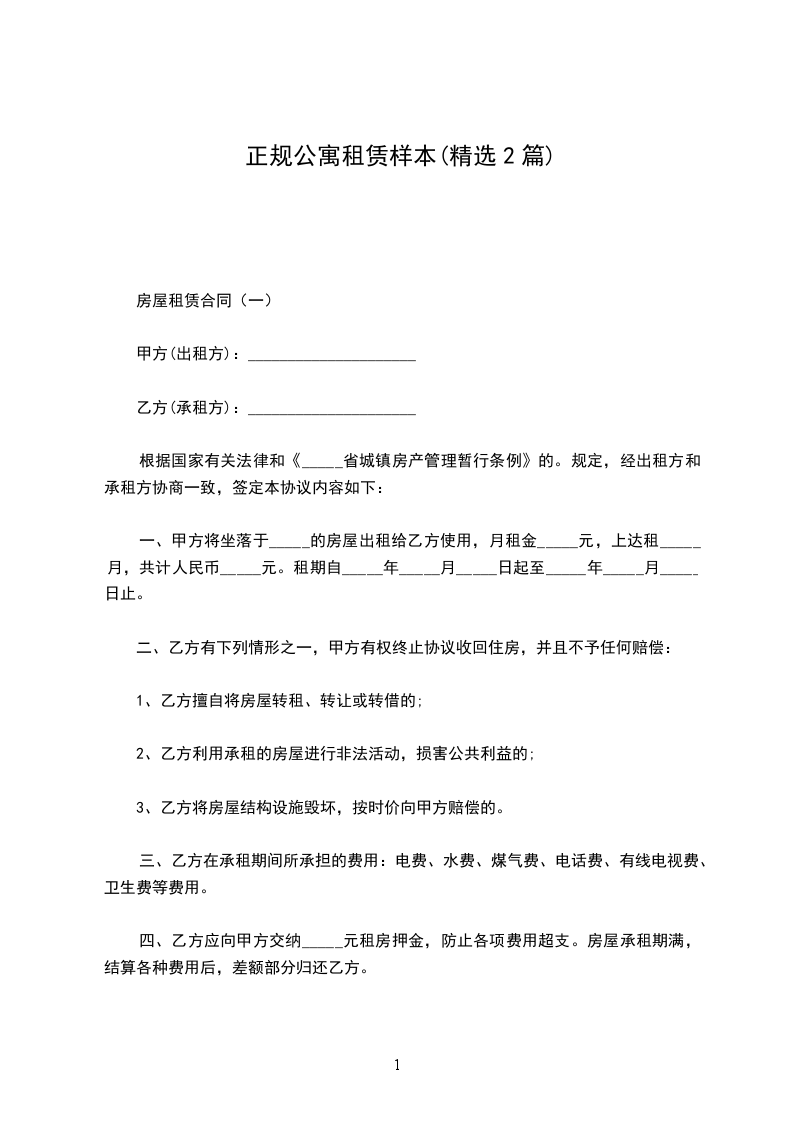房屋租赁合同(一)