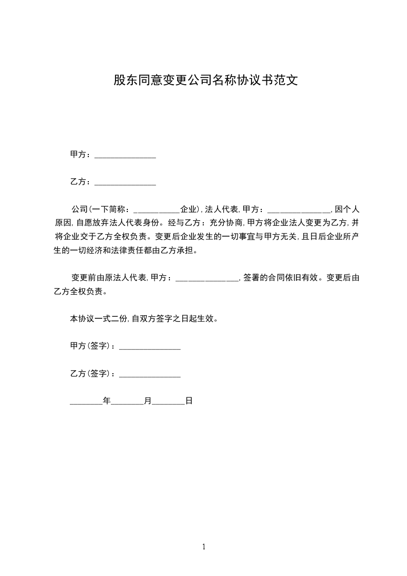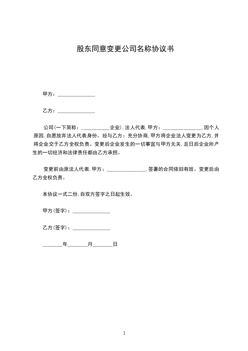 一、原公司股东_______________________有限公司现名称已变更为_____________________有限公司,相应变更公司股东名称。